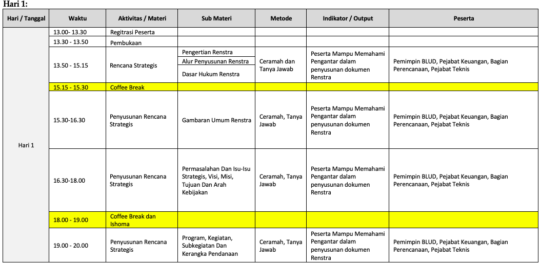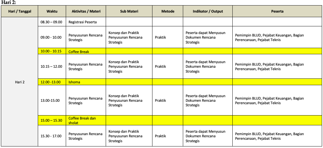 Susunan Acara Workshop Pola Pengelolaan Keuangan Badan Layanan Umum Daerah (PPK-BLUD)